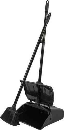 Pelle et balayette de luxe noires avec manche - Ramassage automatique