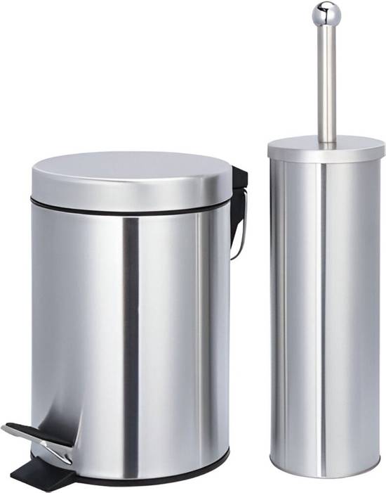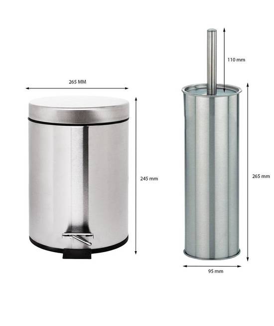 Poubelle en acier inoxydable 3 L avec porte-brosse de toilettes et brosse de toilettes assortis | Brosse de toilettes | Poubelle | Acier inoxydable | Support | Poubelle à pédale | Poubelles | Poubelle