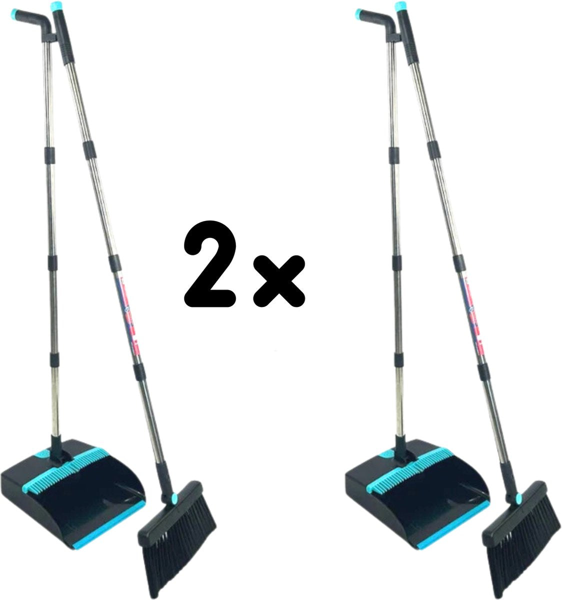 Balayette et pelle à long manche 121 cm, lot de 2 - Synx Tools Balayette et pelle à long manche - Balayette et pelle avec dents de nettoyage - balayette et pelle
