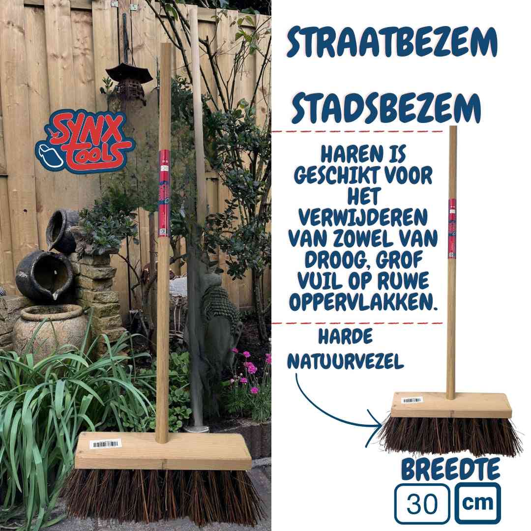 Balai de ville Synx 30 cm - Fibres naturelles dures - Avec manche de 150 cm
