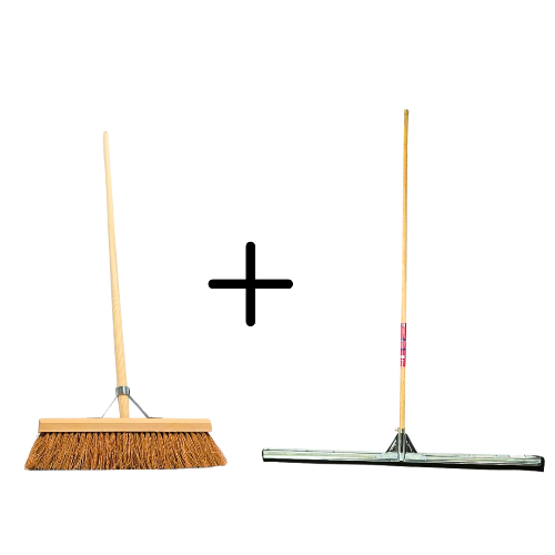 Synx Tools Balai d'intérieur en coco 40cm + raclette 100cm avec manche 150cm - Balai d'intérieur - Nettoyeur de sol - Mopping - Balai doux en coco avec manche 150cm