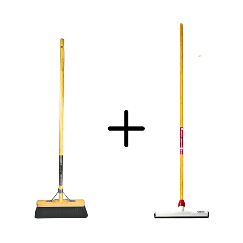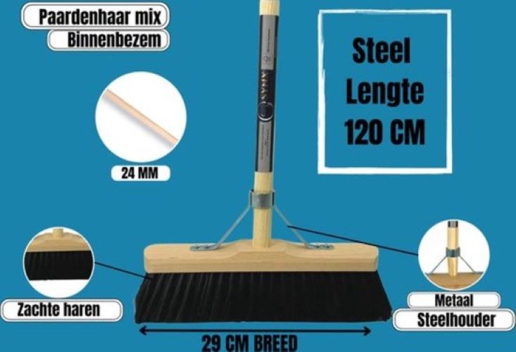 Synx Tools Crin de cheval 29 cm + Raclette en plastique 35 cm avec manche 120 cm - Balai pour sol - Nettoyant pour sol - Caoutchouc naturel - Balai intérieur souple avec manche 120 cm