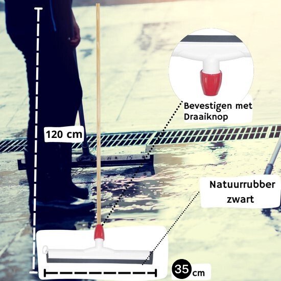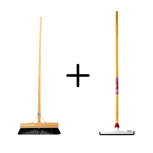 Synx Tools Crin de cheval 30 cm + Raclette en plastique 35 cm avec manche 120 cm - Balai pour sol - Nettoyant pour sol - Caoutchouc naturel - Brosse intérieure douce avec manche 150 cm