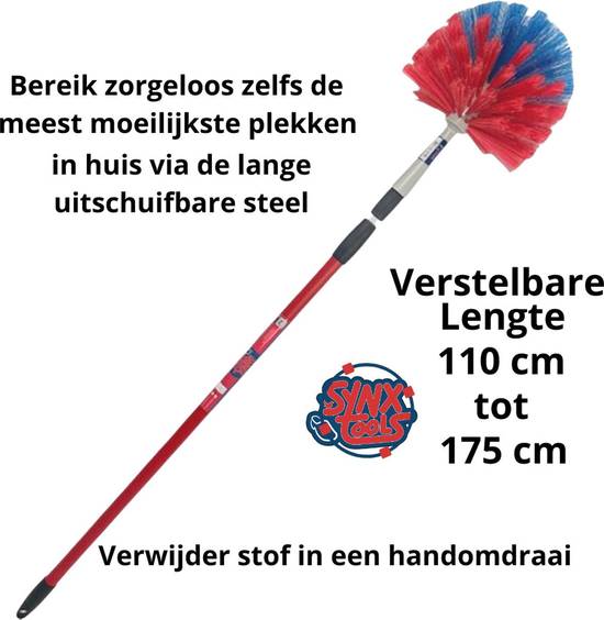 La brosse à récurer télescopique Synx Tools de 155 cm est la solution parfaite pour nettoyer les endroits difficiles d’accès. Que vous souhaitiez enlever des toiles d’araignée, de la poussière ou de la saleté sur les plafonds, les coins, les poutres ou les murs, cette brosse à toiles d’araignée facilite la tâche en toute sécurité. Grâce au manche télescopique extensible, vous n’avez pas besoin d’échelle et pouvez atteindre facilement les surfaces en hauteur.