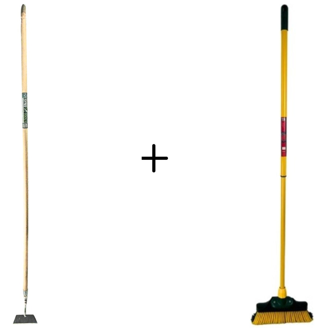Synx Tools Houe Droite 16cm + Balai-Griffe 35cm - Acier Télescopique 70 - 140cm - Houe - 170cm Acier avec Poignée