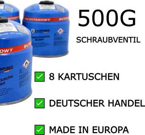 8 cartouches de gaz butane 500g avec valve à vis Cartouche de gaz butane à visser - Convient à tous... En savoir plus